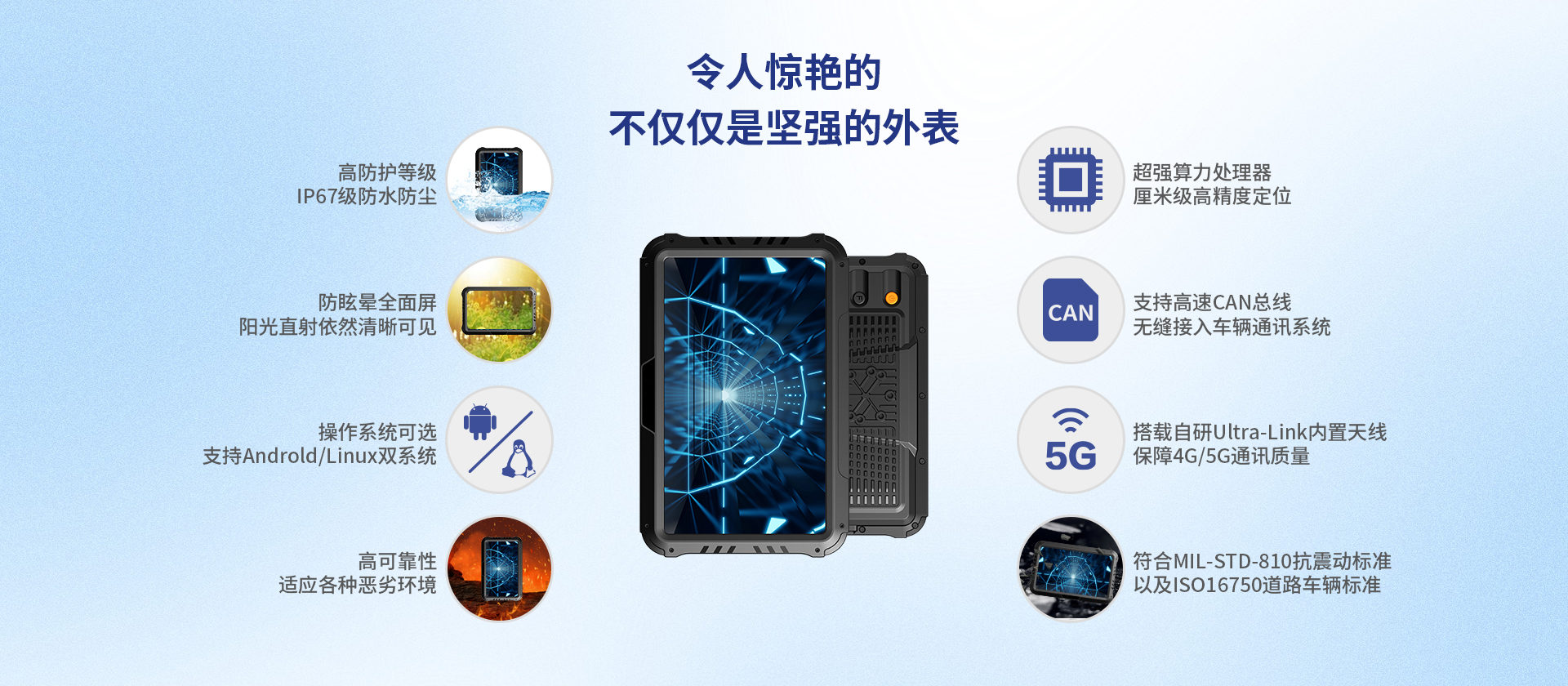 深圳市从飞智能科技有限公司是一家集研发、生产、销售为一体的国家级高新技术企业,公司拥有行业内资深软件、硬件、机械、工业设计等工程师及管理人员100人,员工400多人。主要产品有:车载平板、三防平板、防爆平板、工业平板电脑和移动设备等。从飞智能坚固型车载工业平板,业界首创防眩晕全面屏、配备超强算力处理器、支持厘米级高精度定位、支持ISOBUSVT、具备优秀CAN总线能力、轻松完成软件开发,性能强劲,为您量身打造。广泛适用于各行各业,如精准农业、智慧交通、自动化施工、矿山机械、智慧医疗、空港码头和智慧仓储等。