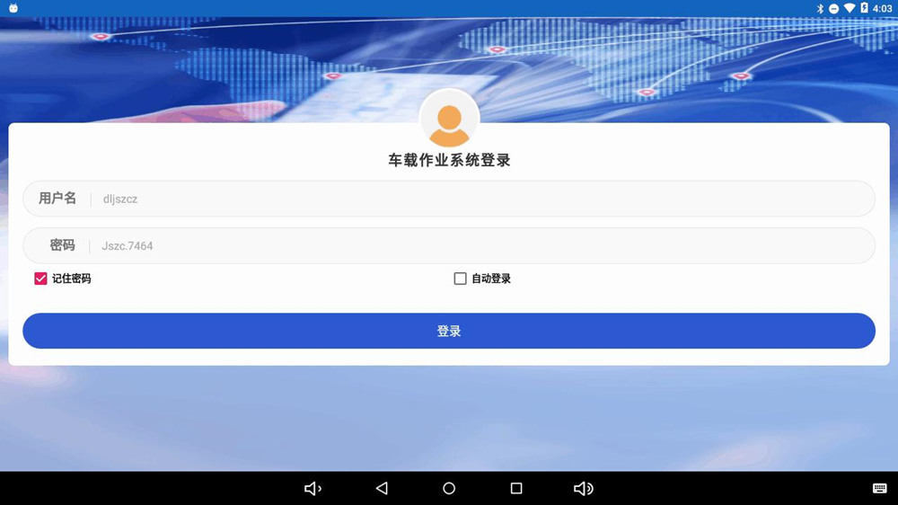 1、车载终端可以通过访问无线网或者插入SIM流量卡进行网络连接,企业内网服务器对外访问IP端口映射部署,实现车载系统用户登录/退出功能,具体界面如上图所示。