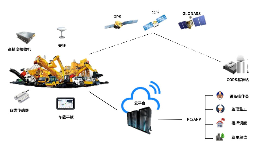 系统采用北斗高精度实时定位技术和压实传感器监测技术,通过软件的实时处理获知压路机钢轮准确的三维位置及钢轮的震动量,以数字化、图像化的方式实时记录显示压路机行进方向、行进速度、振动压实值、碾压遍数、填筑厚度等信息,从而引导施工。