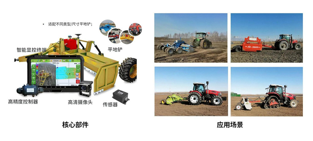 适配普通平地铲、铲运机、推土机、平地机等整平机械,通过对整平机械进行引导及控制,可达到精准整平的目的。是农田整平、格田改造、荒地开垦、旱改水及场地路面等高平整度地面整平的利器。